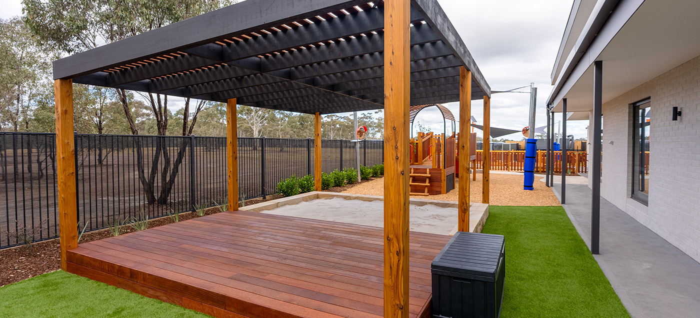 This Tarneit childcare playground project involved compliant playground construction and outdoor landscape works. Designed by childcare playground experts. Built for high-use childcare…