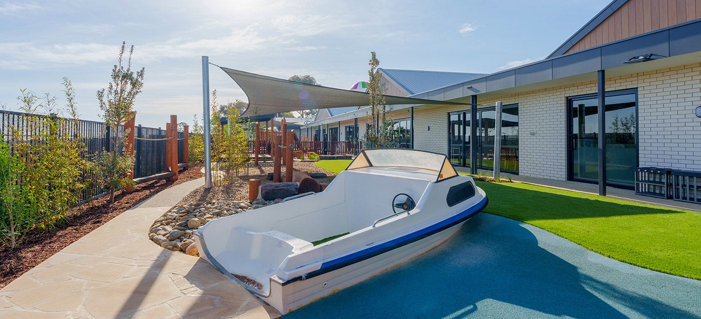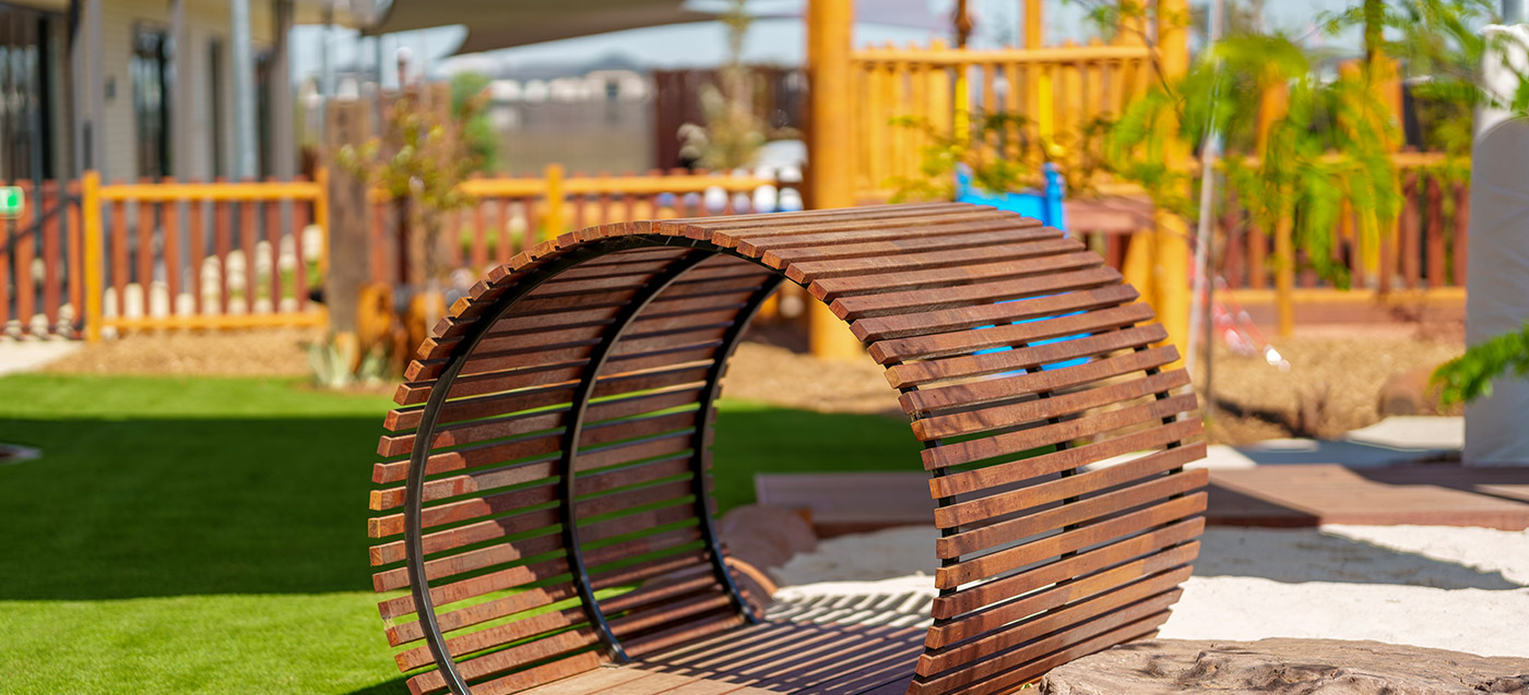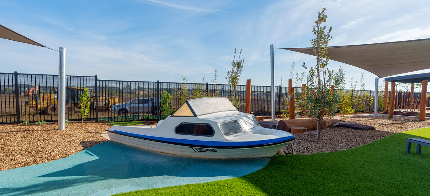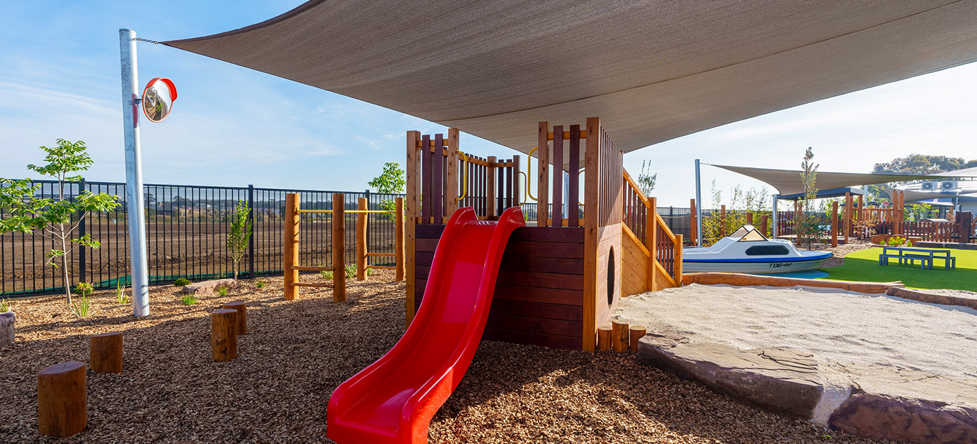 This Armstrong Creek childcare playground project features structured outdoor play and integrated landscape elements. Delivered by specialist childcare landscapers. Designed for safe, high-use childcare playgrounds.