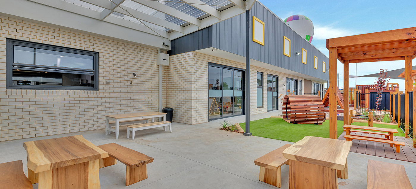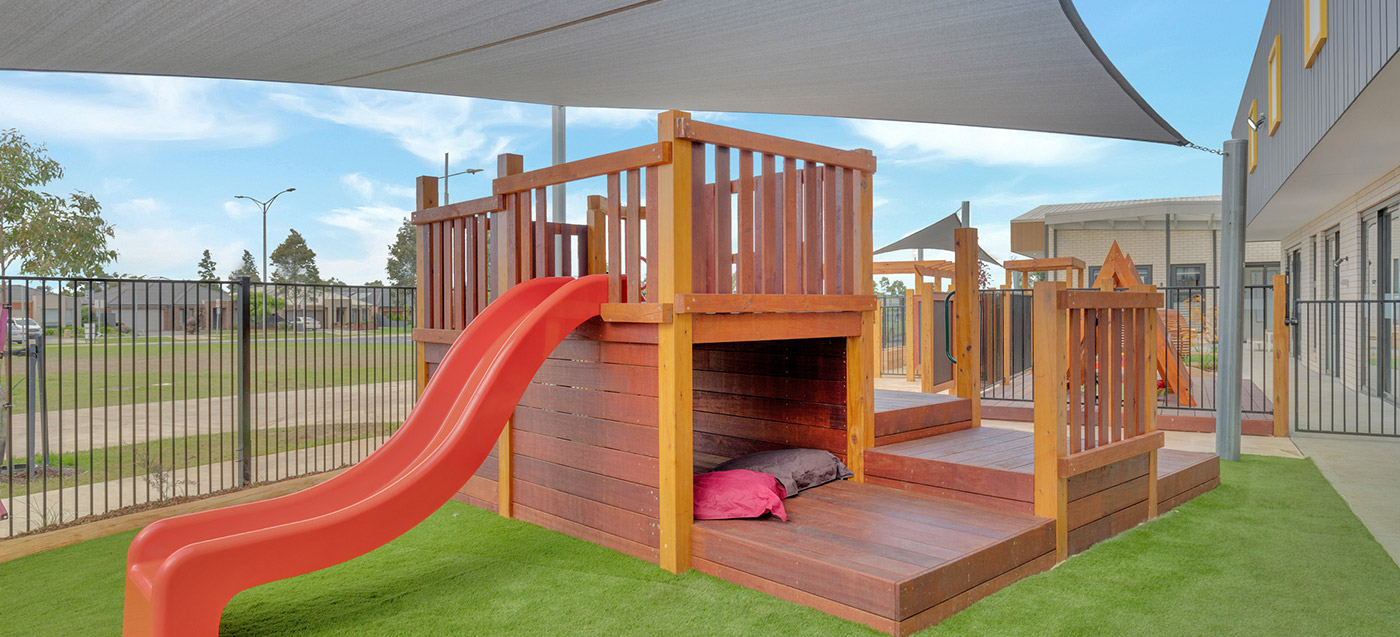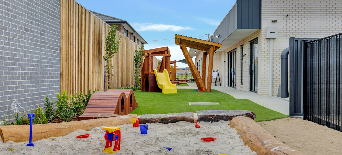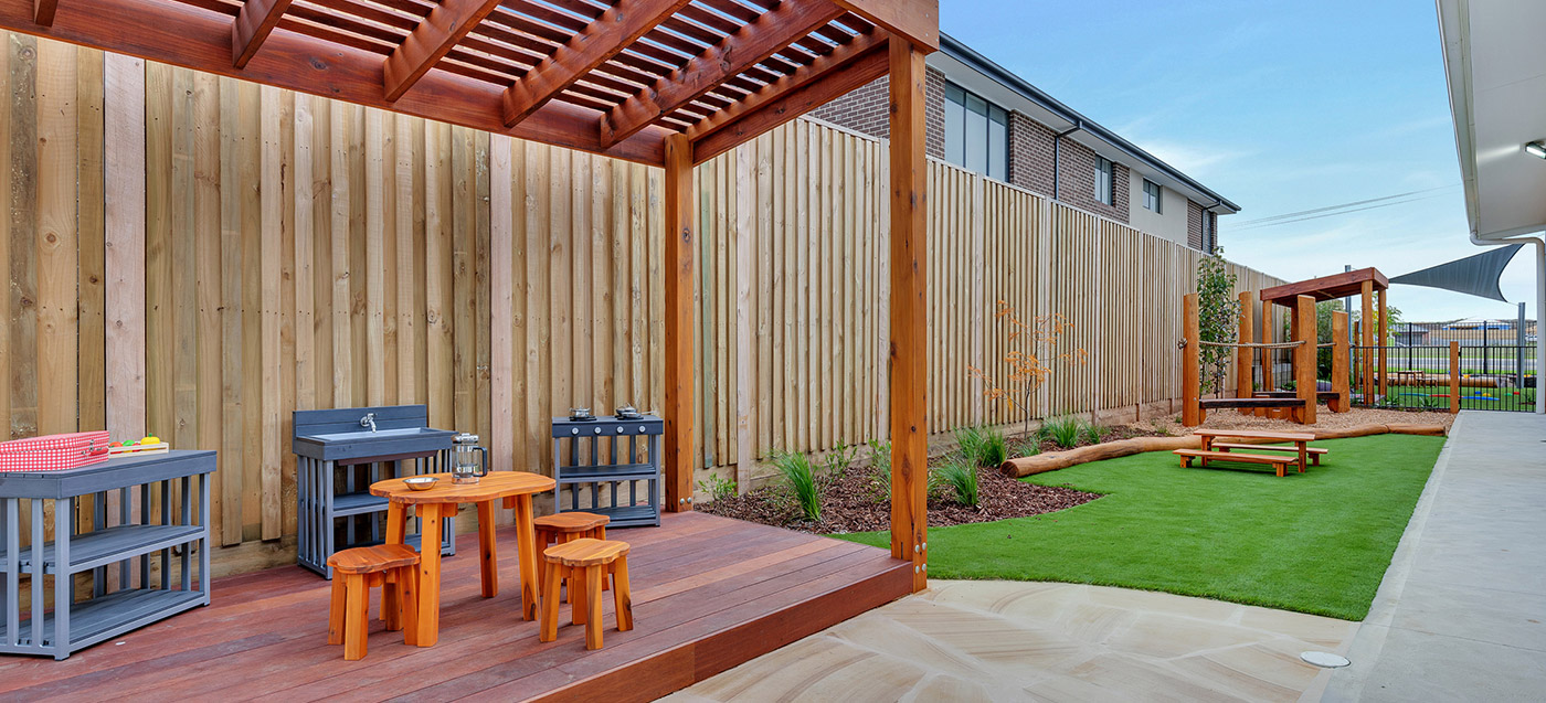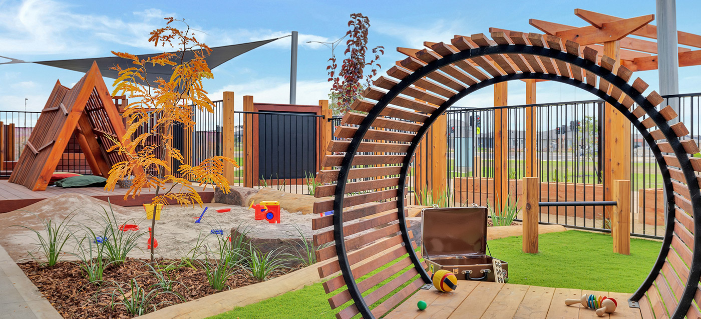 A complete childcare landscape and playground construction project delivered in Manor Lakes. The outdoor environment includes safe surfacing and interactive play features. Built by specialist childcare landscapers.